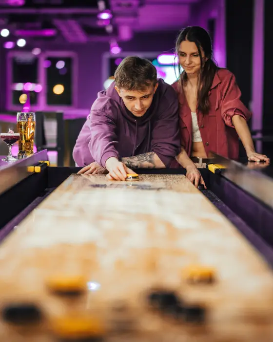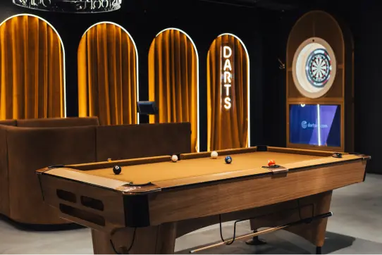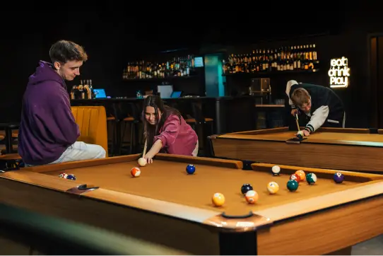 Klasyczny bilard, strefa arcade, interaktywne rzutki, shuffleboard, prywatne karaoke i wiele więcej!