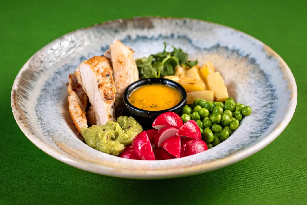 Zdrowo, pysznie i konkretnie. Świeże bowle na bazie czarnego ryżu z pieczonym łososiem, kurczakiem lub wieprzowiną.