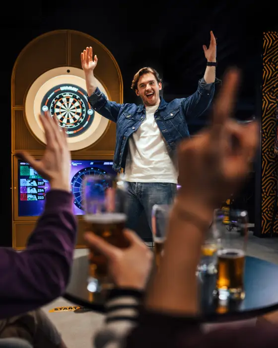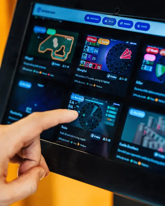 System kamer precyzyjnie śledzi lot rzutki i sam zlicza punkty na ekranie. Zapomnij o liczeniu i skup się na grze!